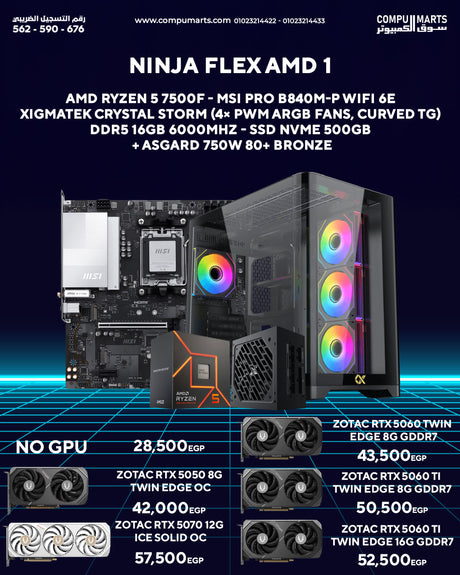 نينجا فليكس #1 - Ryzen 5 8400F - A620M - 16 جيجابايت - 256 جيجابايت - RTX 4060 / 4060 Ti - MX410 -