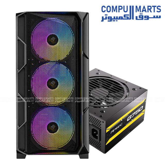 Antec AX1000 Lite ARGB Mid-Tower Case with 4×140mm ARGB Fans + Antec Atom G750 80+ Gold Semi-Modular PSU (5 Years Warranty)
