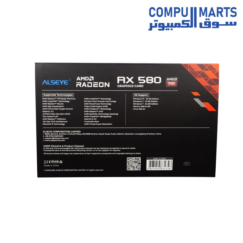 Alseye AMD Radeon RX580 Gaming Graphics Card, 8GB GDDR5 256 Bit RAM Memory With Cooler Fan